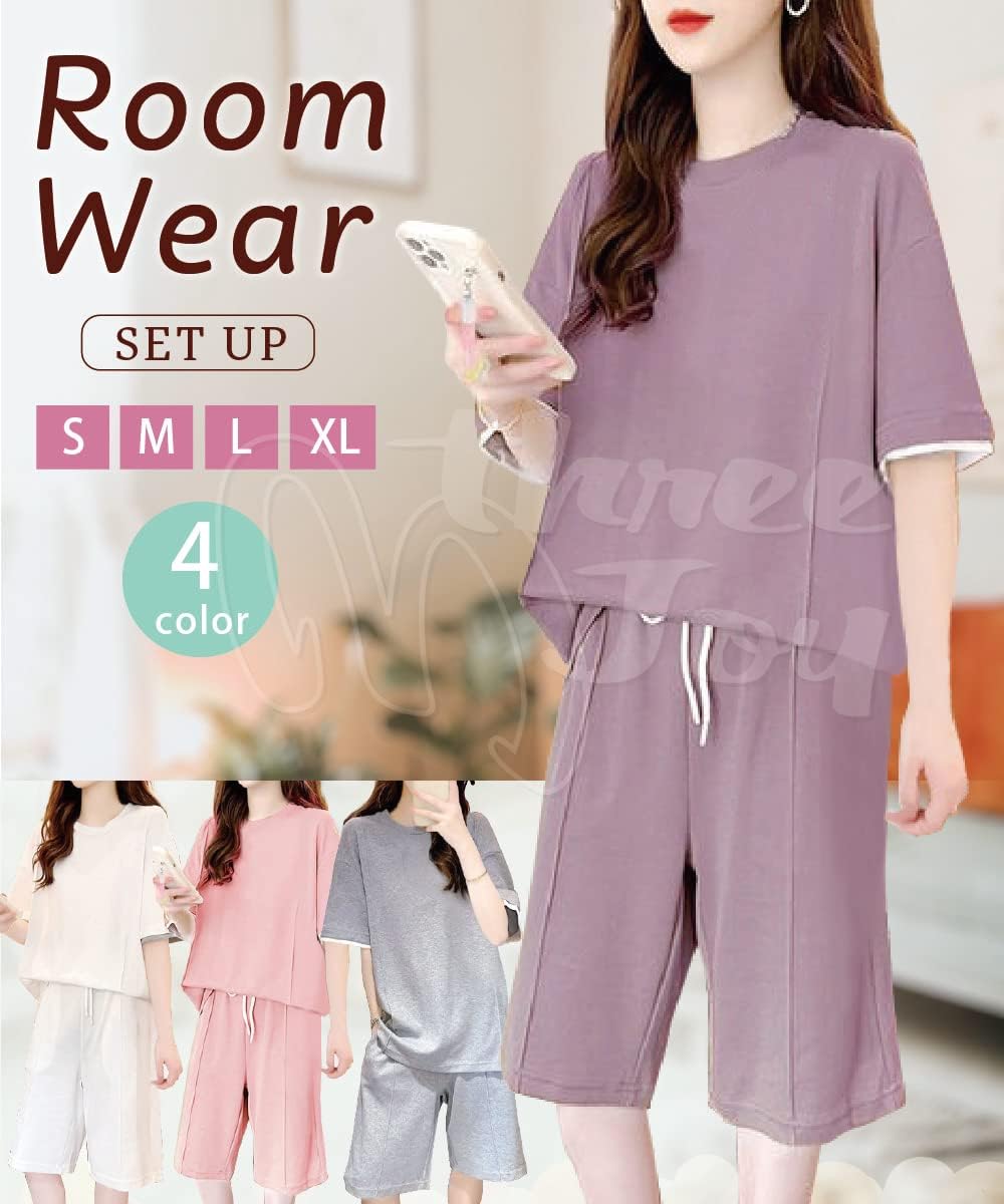 「●ご注意のこと:購入前に商品の説明で詳細サイズ表をご参照ください。 ●ゆったり感をご希望の場合は1サイズ上がお勧めです。 商品説明 ●半袖 tシャツ+ハーフパンツ スウェット 上下セット。 ●お洒落な女性用のプリントtシャツ+半ズボン2点セ…」