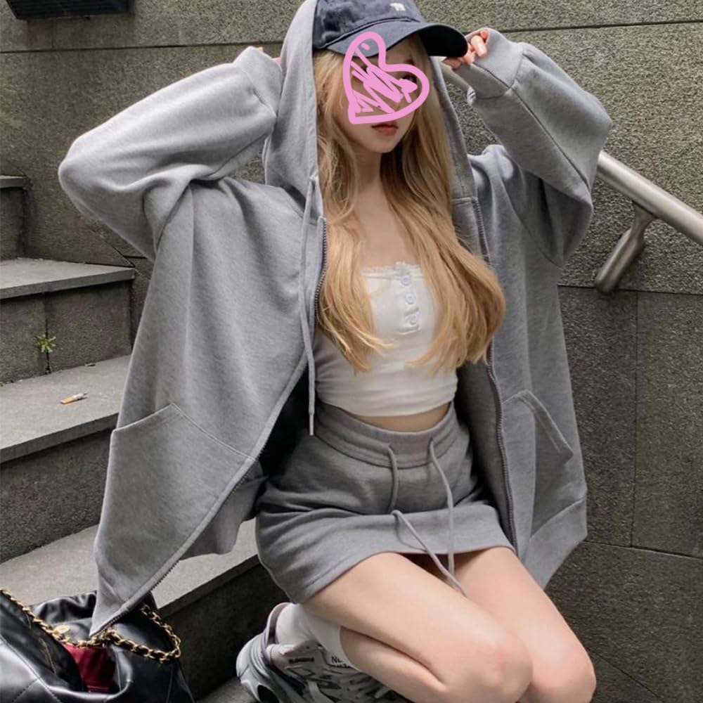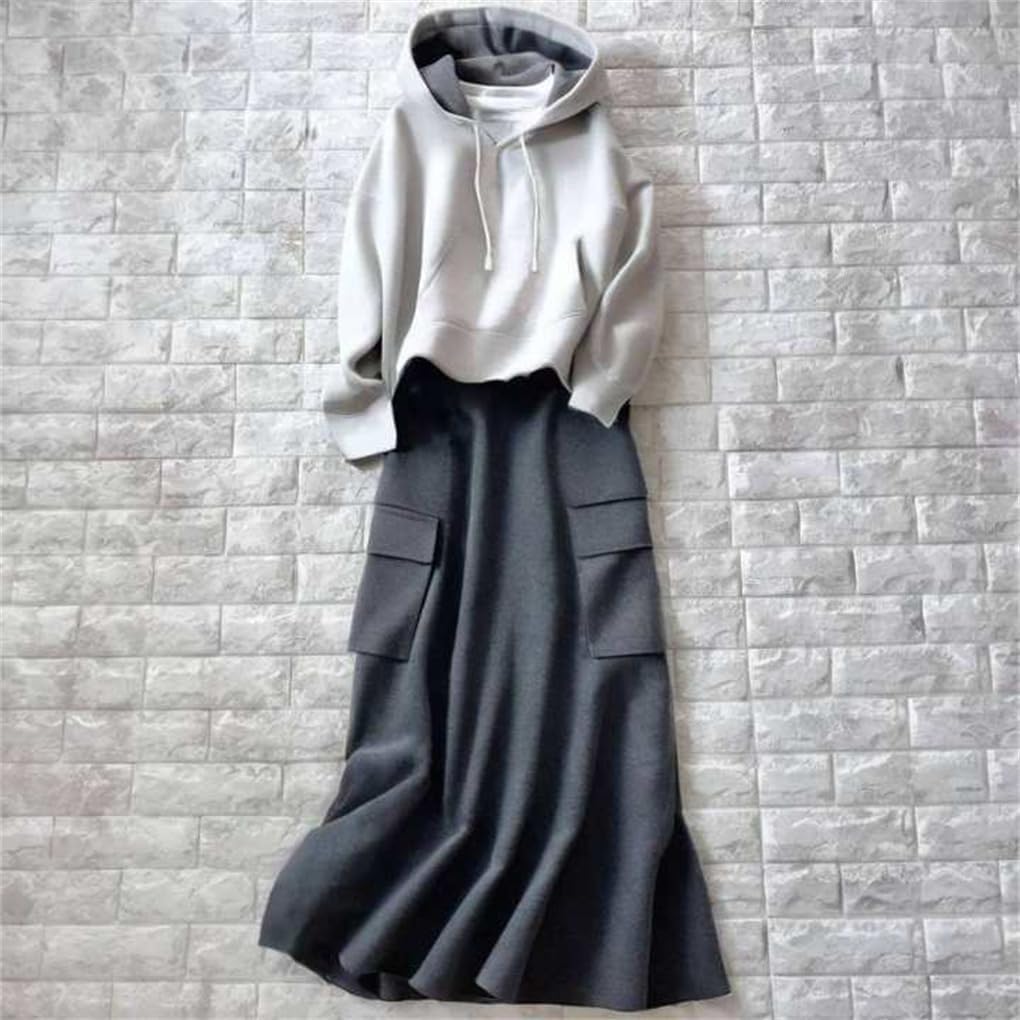 [DYIOPMFGZ] パーカー セット レディース セットアップ ジャージ ストレートスカート ロングスカート スウェット トレーナー フード付き ダブルジップ 上下セット Iライン 可愛い オシャレ ゆったり ギャザー 秋冬