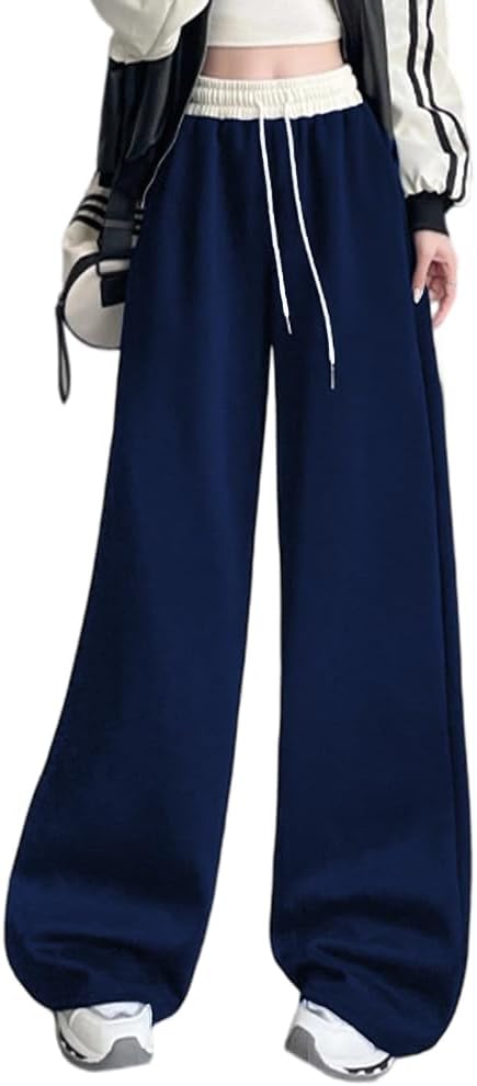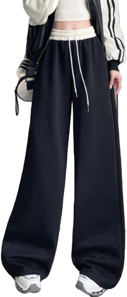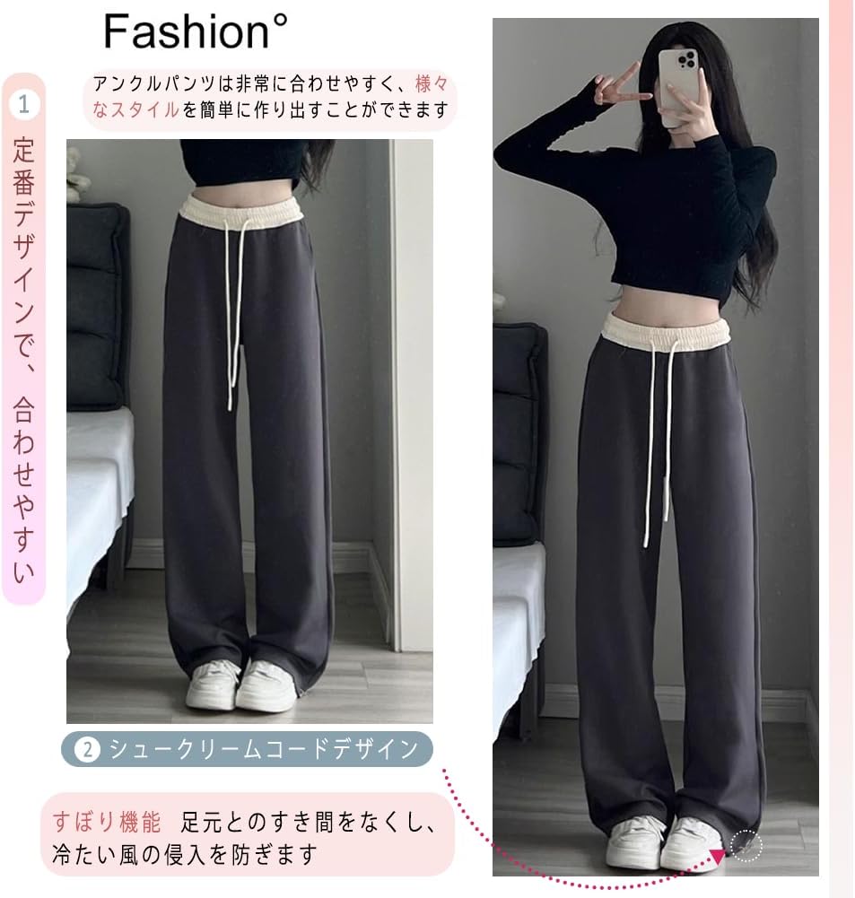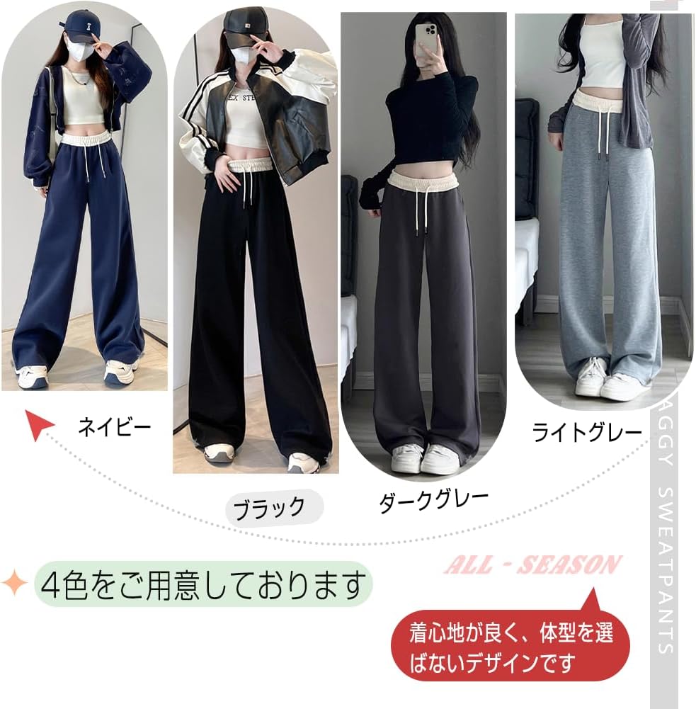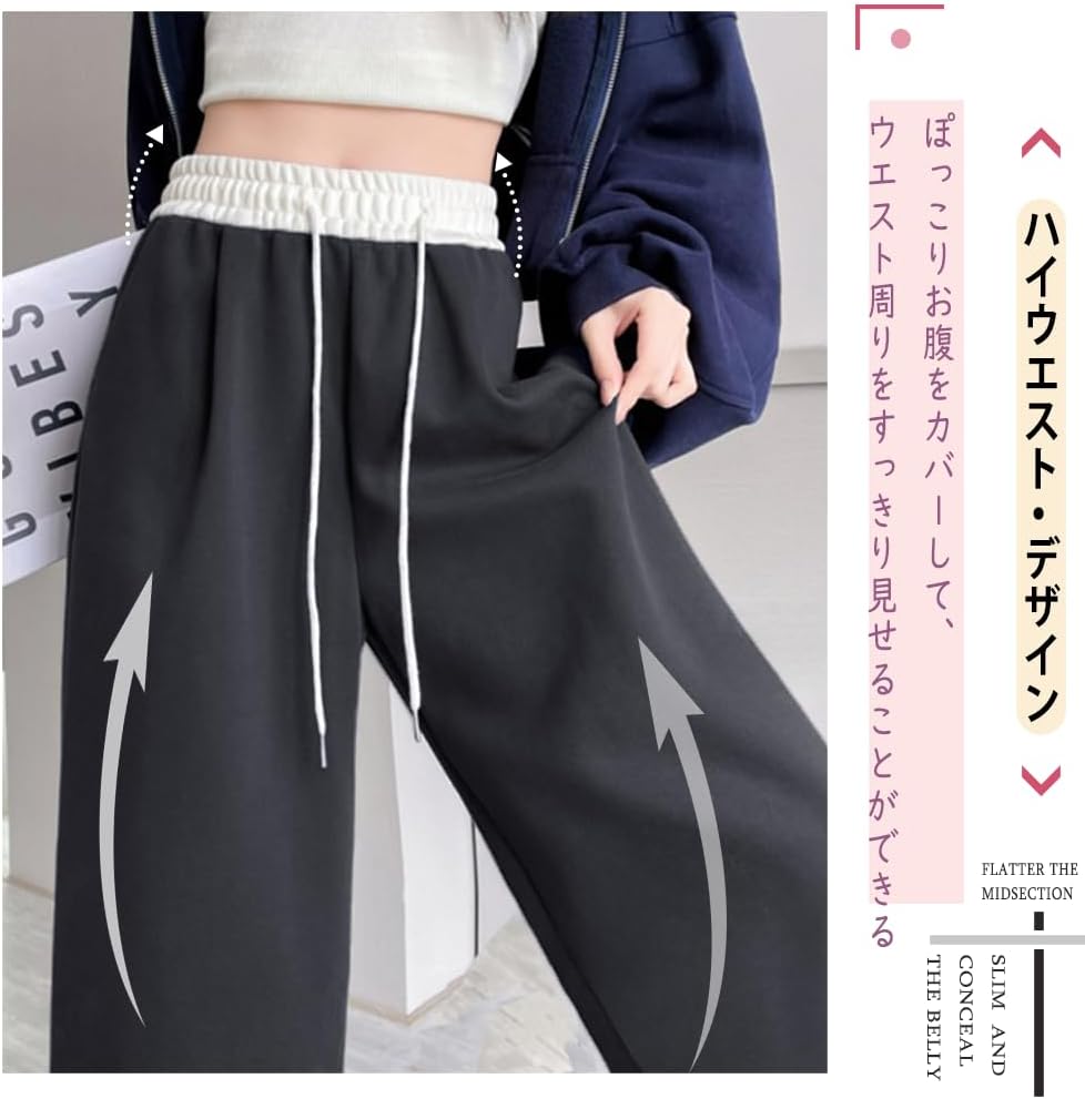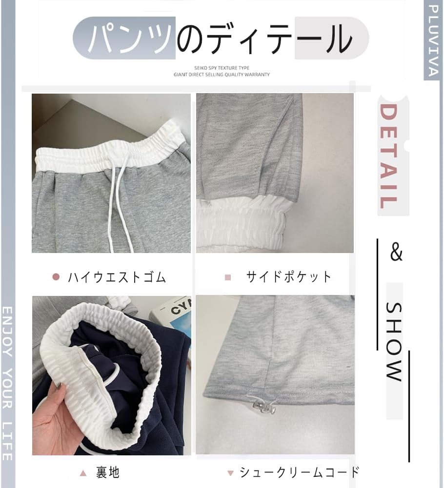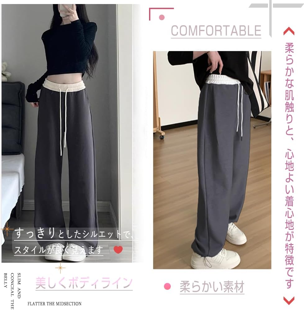 [Pluviva] スウェットパンツ レディース ワイドパンツ ジャージ 下 ロングパンツ アクティブパンツ ボトムス イージーパンツ 春秋 体型カバー 無地 引き紐