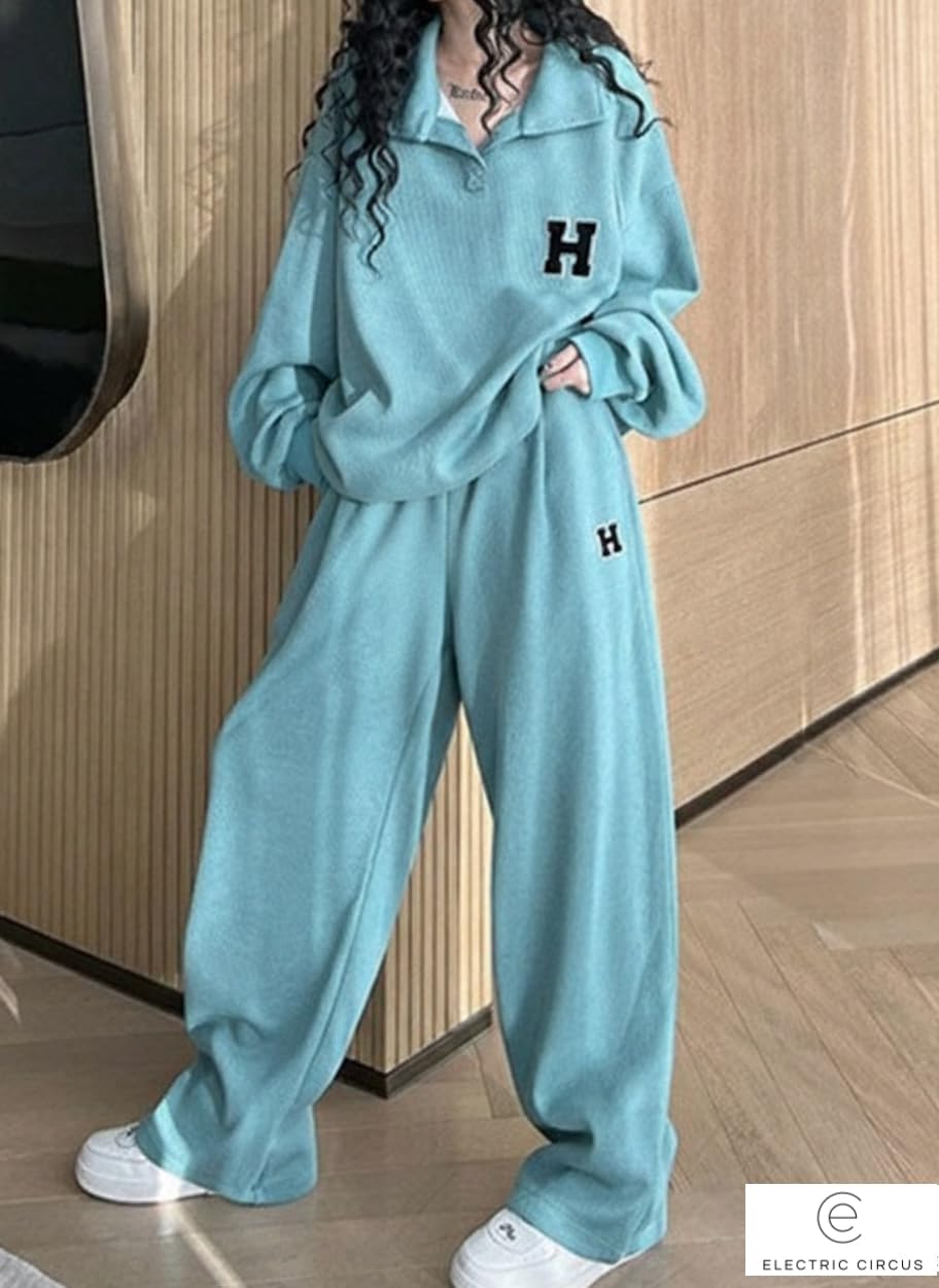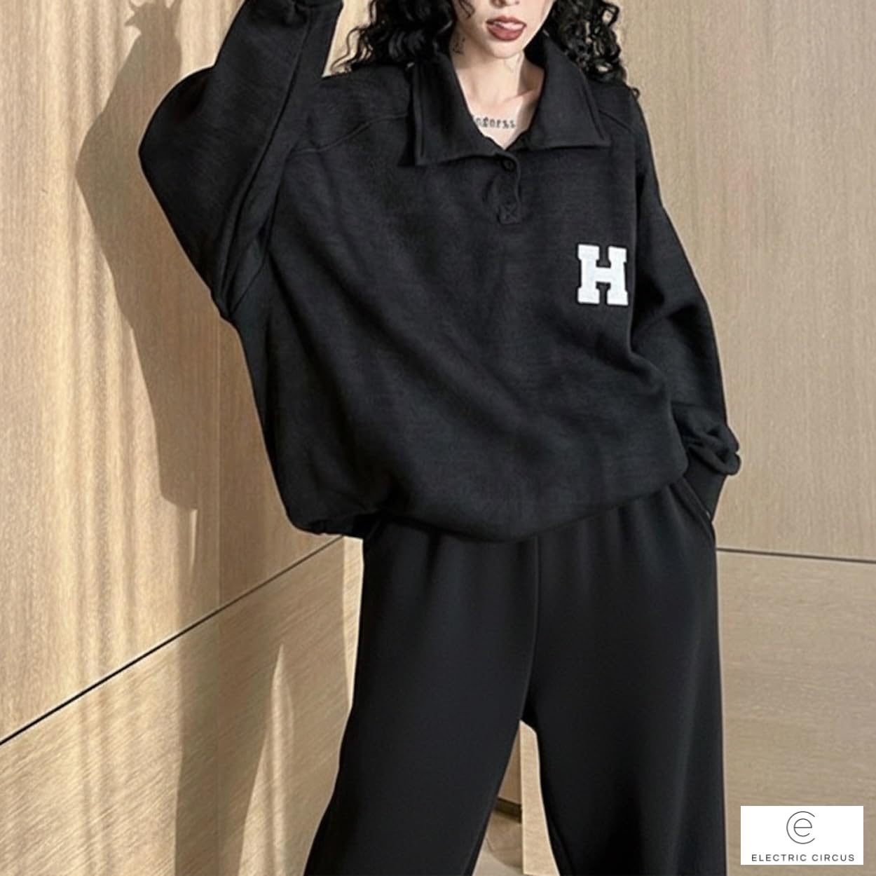 [Electric Circus] ゆったり 大きめ トレーナー 上下 セットアップ 春秋 ハーフジップ プルオーバー らくちんウエストゴム
